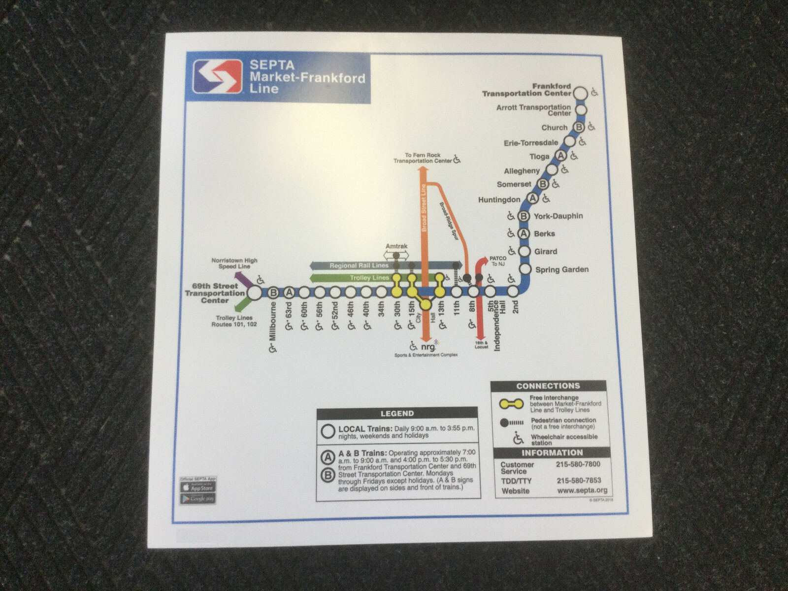 SEPTA Philadelphia MARKET FRANKFORD LINE SUBWAY MAP (Retired A & B