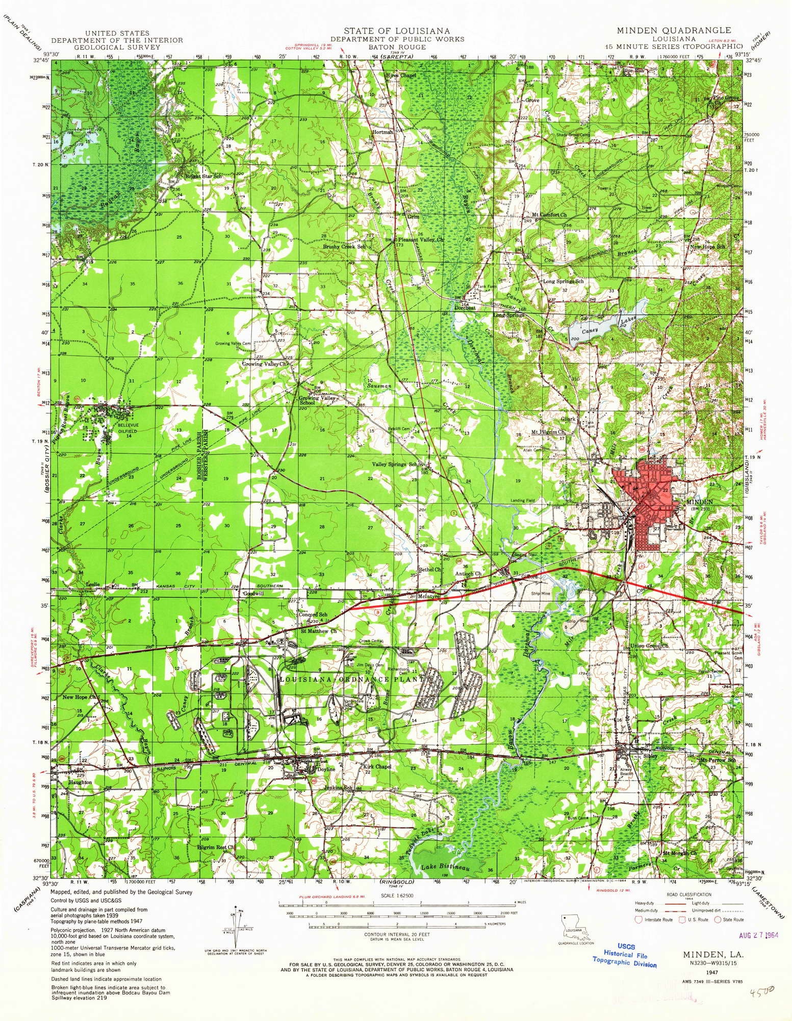 Minden 1947 1964 Old Topo Map Caney Lakes Louisiana Ordnance Plant